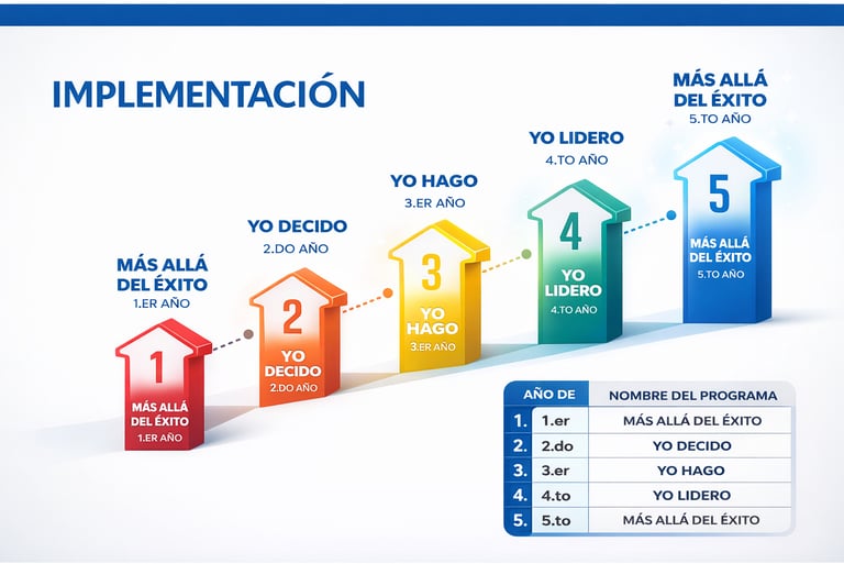Finalmente, “Más Allá del Éxito” (5.to año) regresa como cierre y corona: pero ya no como un concepto, sino como una identidad. El estudiante mira todo lo aprendido y comprende que el éxito auténtico es vivir con propósito, aportar valor a los demás y convertirse en un agente de cambio. Sale de secundaria con un mensaje interno fuerte: “No solo puedo lograr cosas; puedo transformar realidades.”